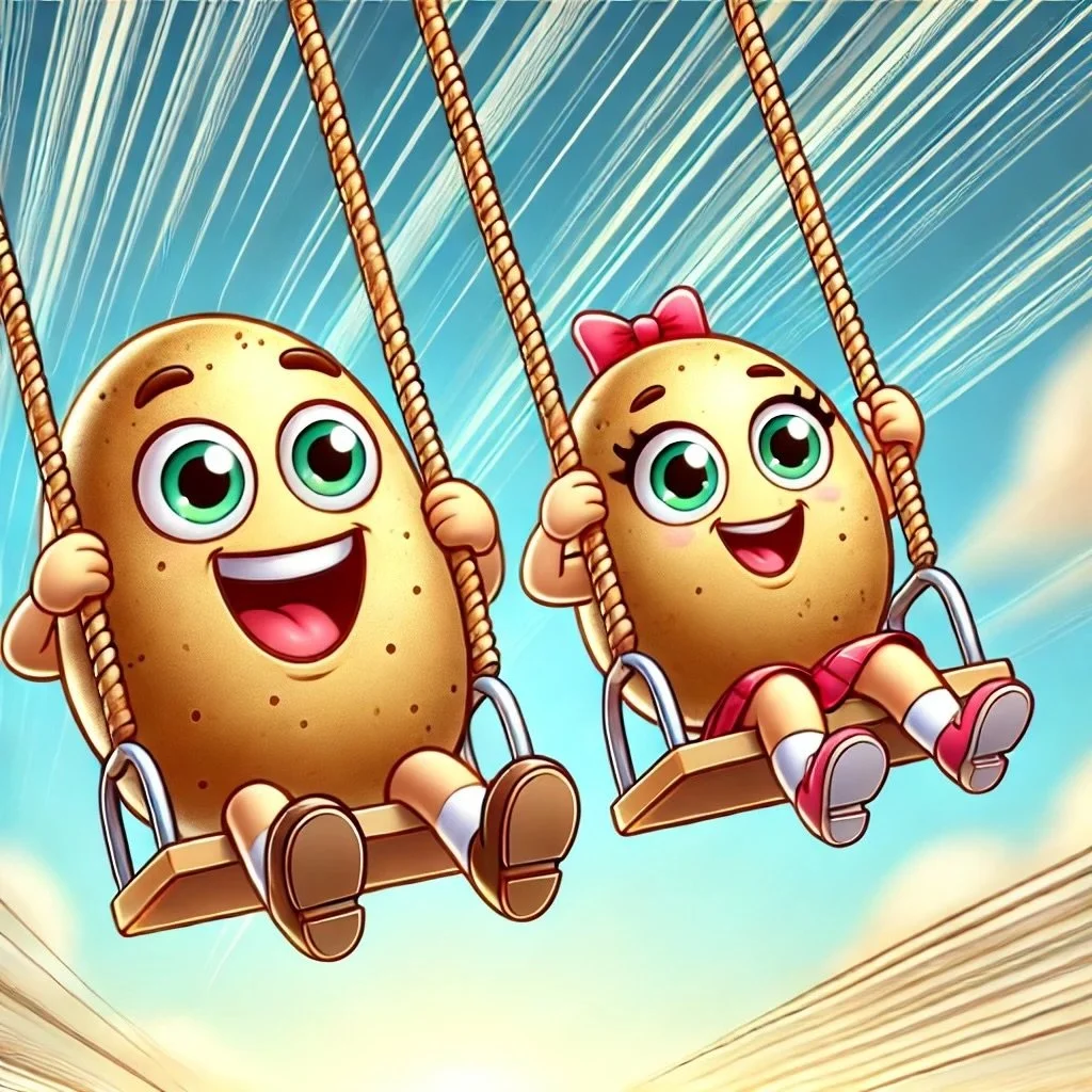 Once upon a time there was a little boy named little potato. Little potato loved playing on the swings and if he could he would swing all day.